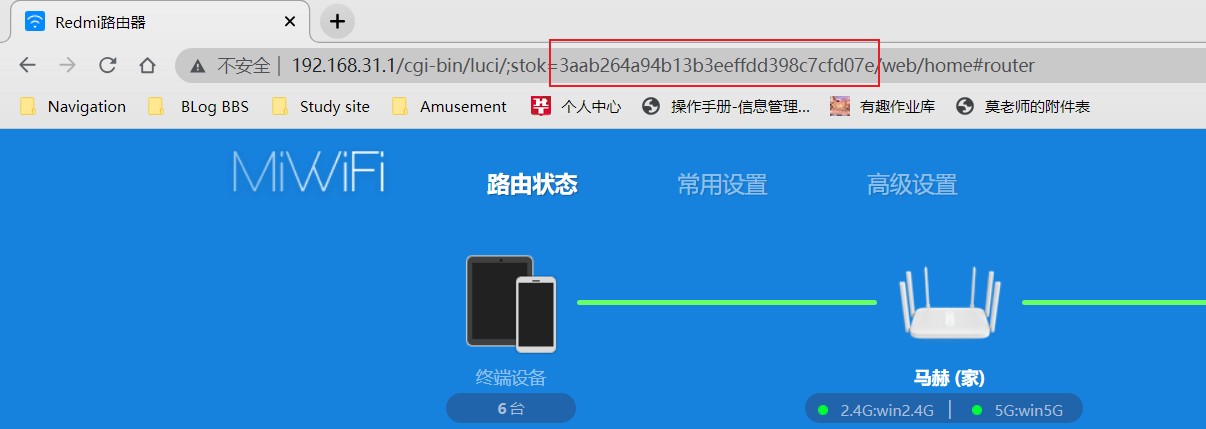 III. 获取 stok 值,登录小米路由器后台,在地址栏会看到 stok 的值,如下: