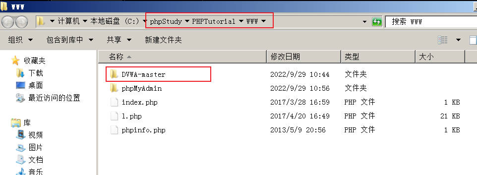 步骤4:解压下载的DVWA-master.zip,把该文件复制到PHPStudy的默认Web站点跟目录,如图1-4