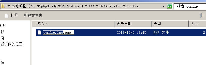 步骤 5:在 C:\phpstudy\PHPTutorial\WWW\DVWA-master\config 目录下,找到 config.inc.php.dist 文件,重命名为 config.inc.php,如图 1-5